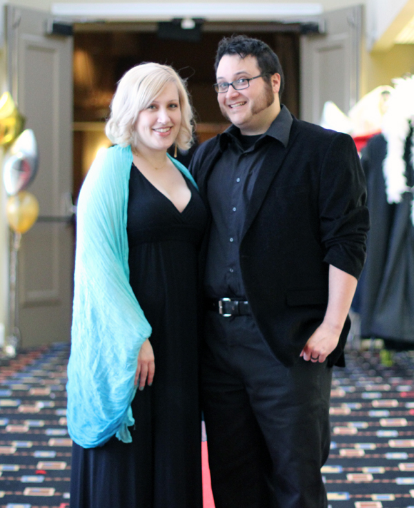 We read on the flier that is was black tie optional...neither of us really knew what that meant. We decided to play it safe and get mildly fancy. The preparation involved: Getting my hair done, Ed got his hair professionally cut for the first time in 12 years, he shaved his goatee off (completely unprovoked by me) he regretted it almost immediately :( but at least it was neat to see his cute chin! Ed wore his regular black pants,a black button up shirt and we went shopping for a .....sport coat! Oh my goodness I love it so much I wish I could wear it, it's black corduroy. I wore a black maxi dress that I already had and bought a blue scarf/shawl?, I would have loved to have a matching pocket silk for Ed but we ran out of time.